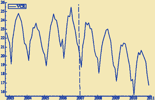 The researchers found that a rising trend of U.S. homicide during the baseline period 2002-2006 was reversed during the 2007-2010 intervention period. In the case of violent crime, the study found a highly significant shift from a flat trend in 2002-2006 to a declining trend in 2007-2010.